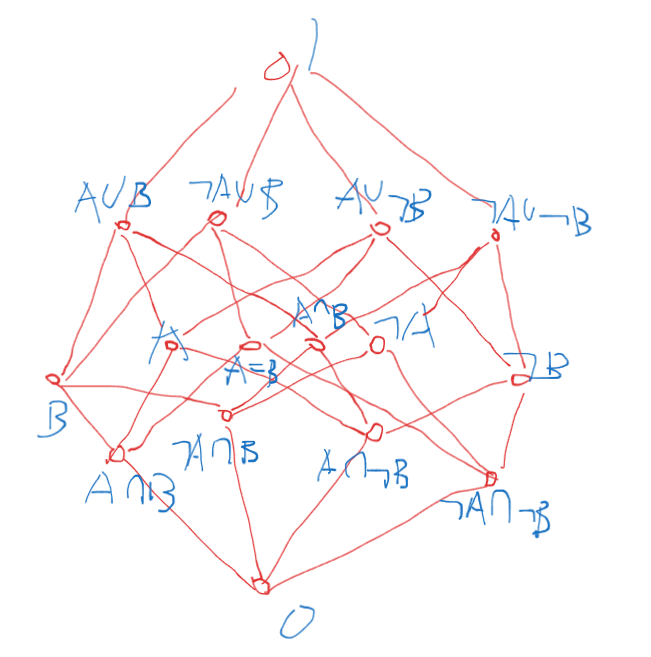 可以证明,任取一个拓扑,其正则开集(在 下)必定构成一个布尔代数。这里 就是我们所意欲的 。